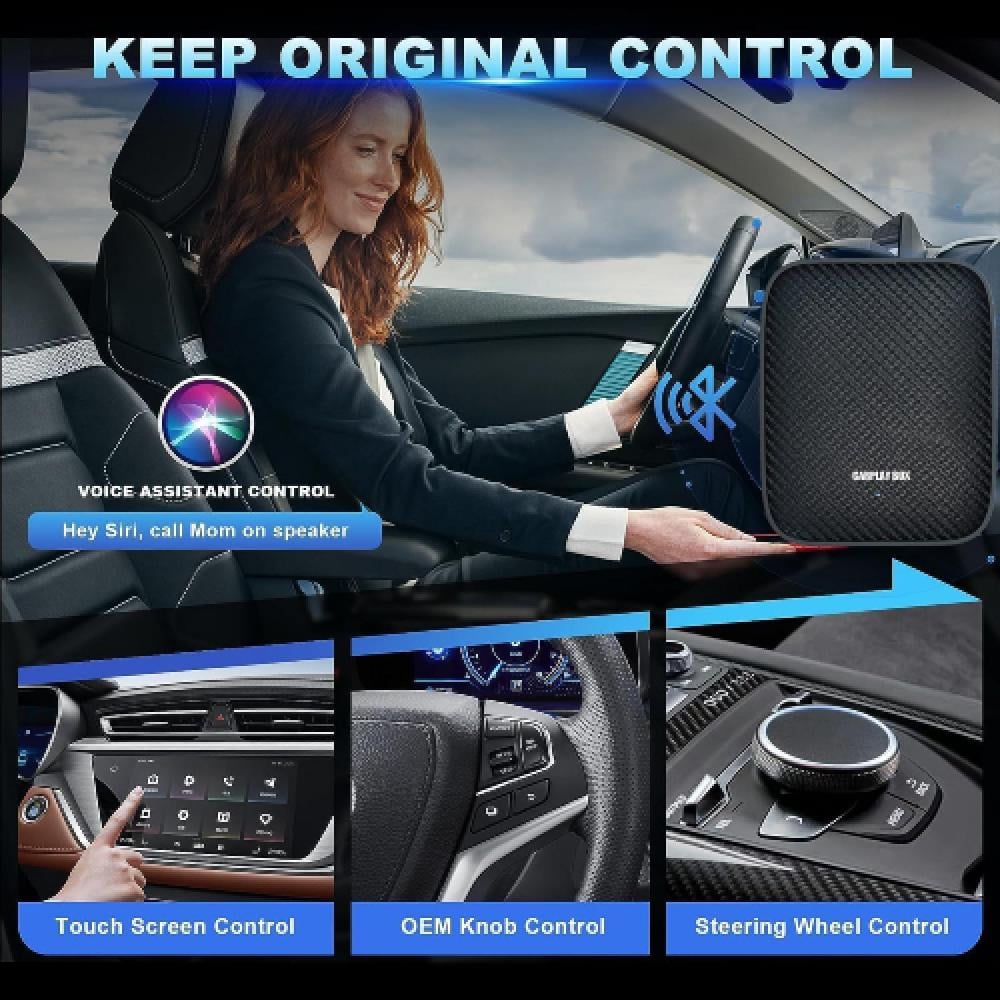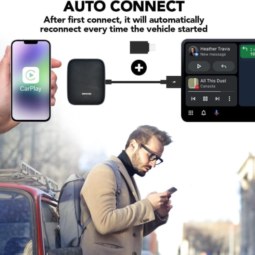 - تجربة قيادة أوتوماتيكية بالكامل: بعد تركيب محول كاربلاي اللاسلكي، ستستمتع بتجربة قيادة أوتوماتيكية بالكامل. بعد بدء تشغيل محرك السيارة، سيتصل محول كاربلاي اللاسلكي تلقائيًا بجهاز ايفون واندرويد اوتو الخاص بك. وحدة واي فاي مدمجة 5 جيجا هرتز ستحدد هاتفك بسرعة وتؤسس اتصال كاربلاي لاسلكي. يدعم محول كاربلاي اللاسلكي هذا أيضًا التحكم الصوتي وعجلة القيادة وشاشة اللمس وتشغيل المقبض.